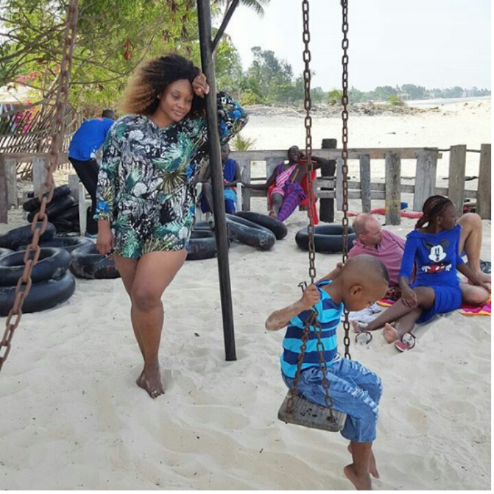 Tanzanian actress Shamsa Ford shared some pictures on her Instagram page of herself and son King Terry having fun. Some people went on the comment section to criticize her dressing style, well guess what Shamsa put them in their place quickly lol!!! See her response after the cut: